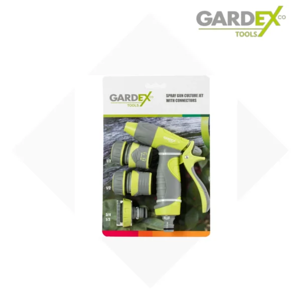 Το Σετ Πιστόλι Νερού GARDEX περιλαμβάνει 4 εξαρτήματα κατασκευασμένα από υψηλής ποιότητας υλικά, όπως TPR και ABS, προσφέροντας αντοχή και μακροχρόνια χρήση.